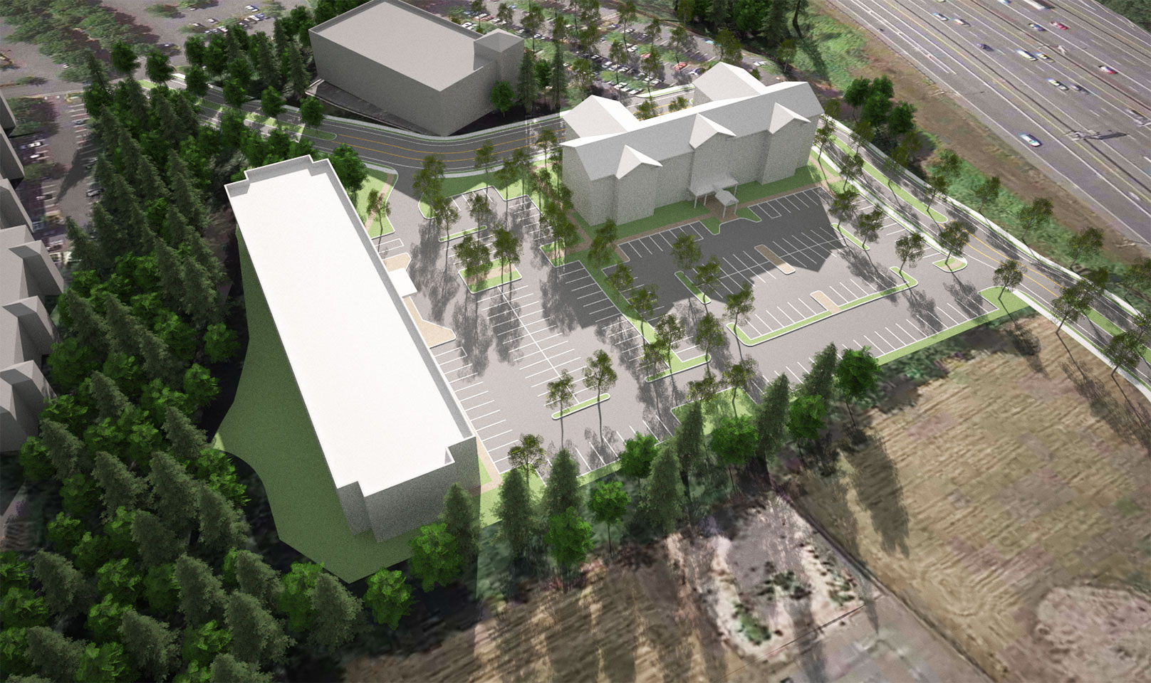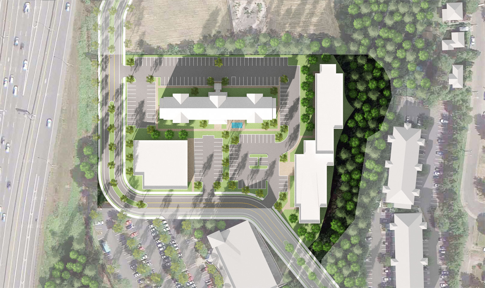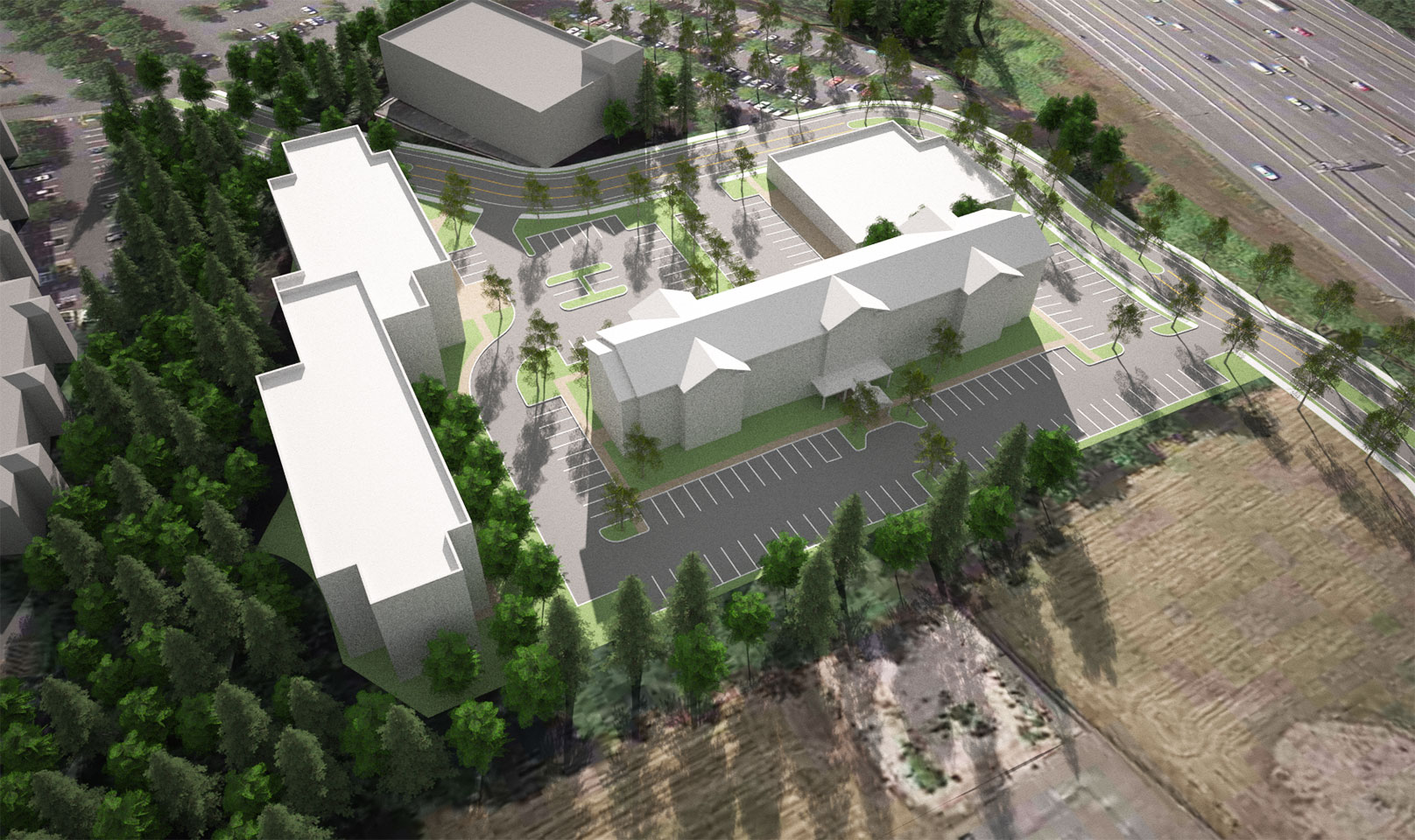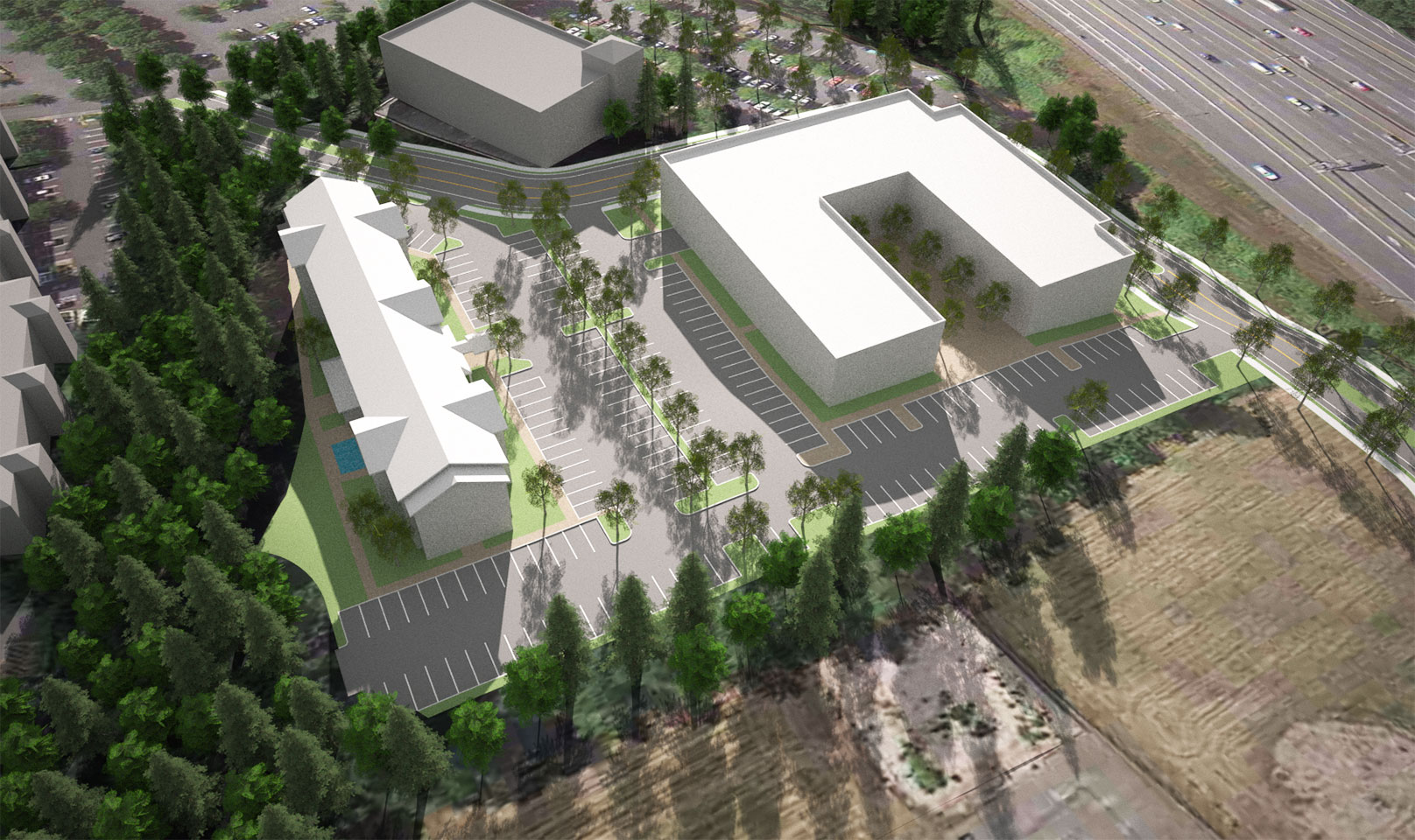 TWIST and Shoesmith Cox Architects collaborated to do a quick site feasibility study on a 4.83 acre site in Mountlake Terrace, WA. The study featured a 97 room hotel and a Multi-Family / Senior Living concept. The team was able to quickly do a multiple of sketches and work with the owner to narrow down the ideas. Then we went into 3D so the owner could both understand the spacial qualiteis and have a quality marketing product.