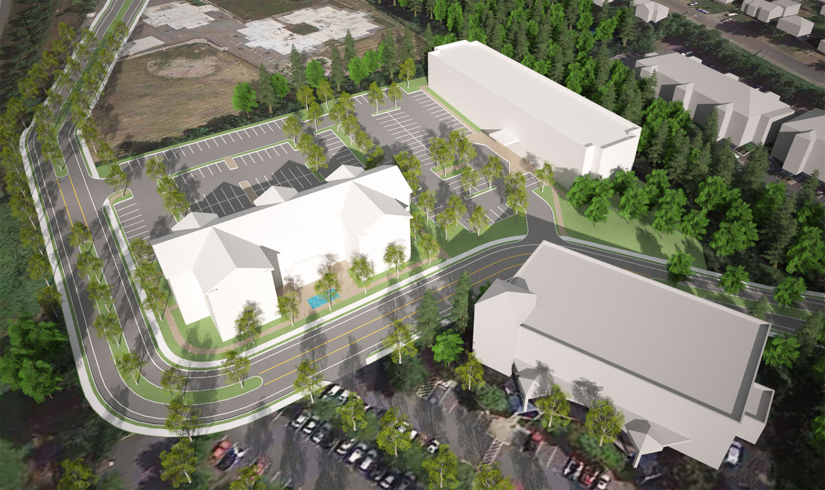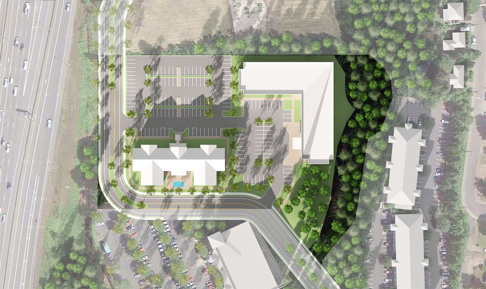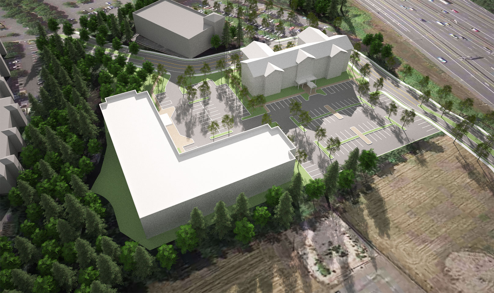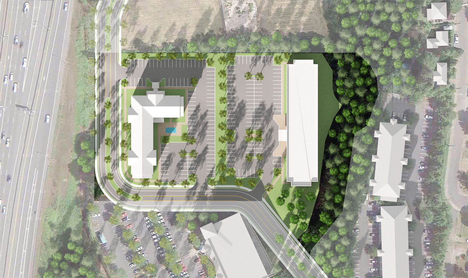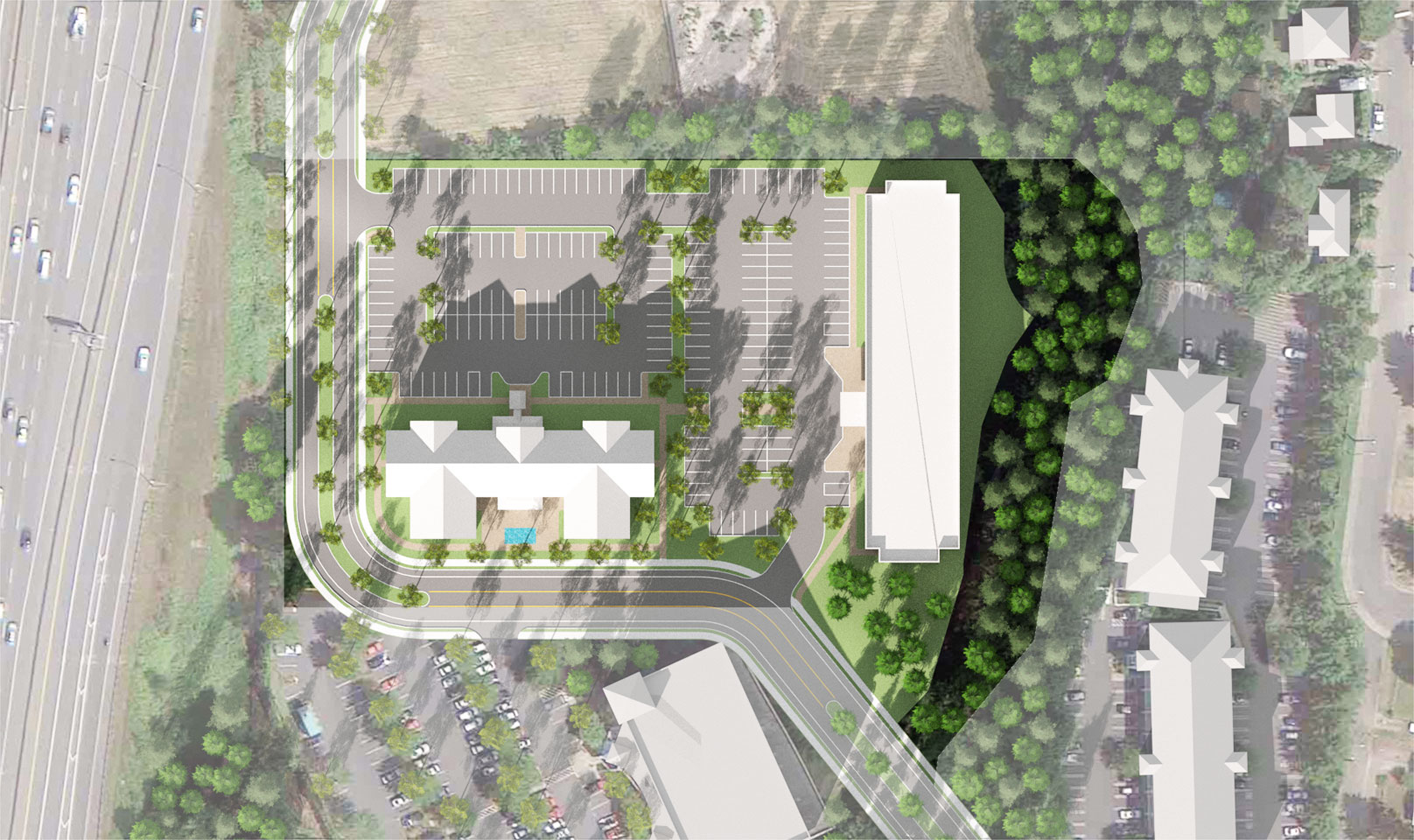 TWIST and Shoesmith Cox Architects collaborated to do a quick site feasibility study on a 4.83 acre site in Mountlake Terrace, WA. The study featured a 97 room hotel and a Multi-Family / Senior Living concept. The team was able to quickly do a multiple of sketches and work with the owner to narrow down the ideas. Then we went into 3D so the owner could both understand the spacial qualiteis and have a quality marketing product.
