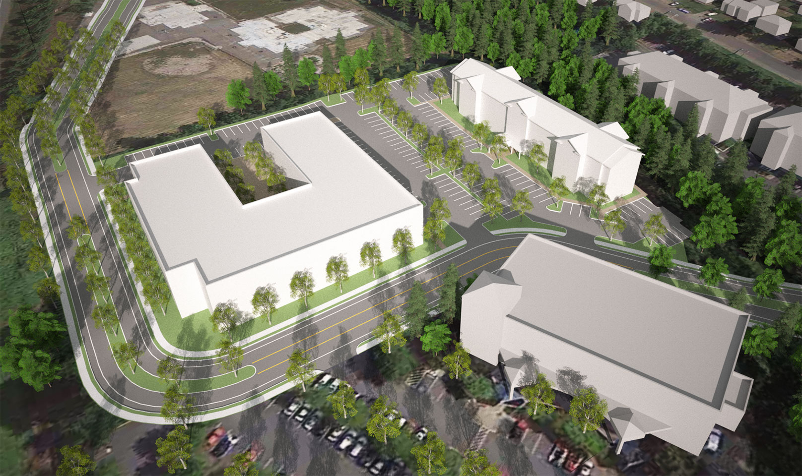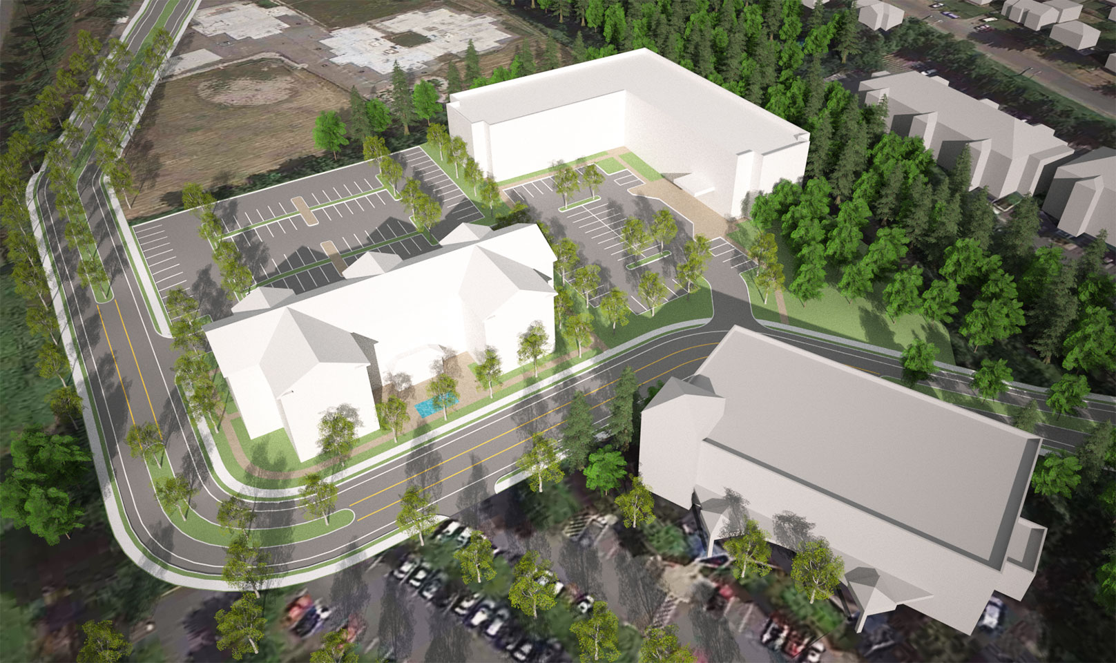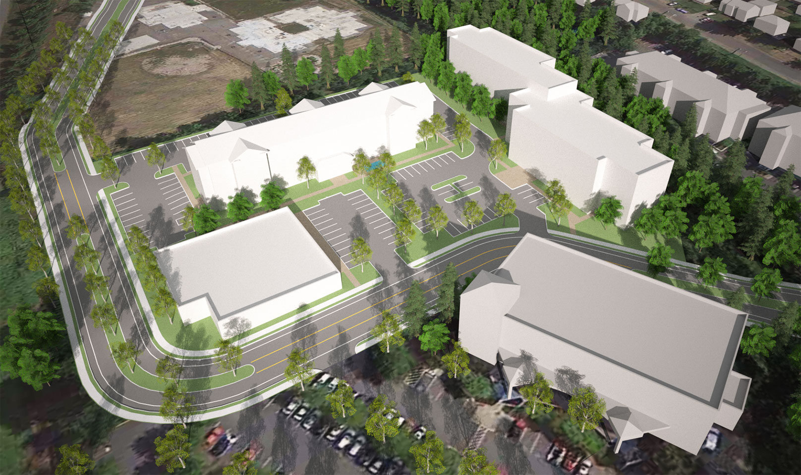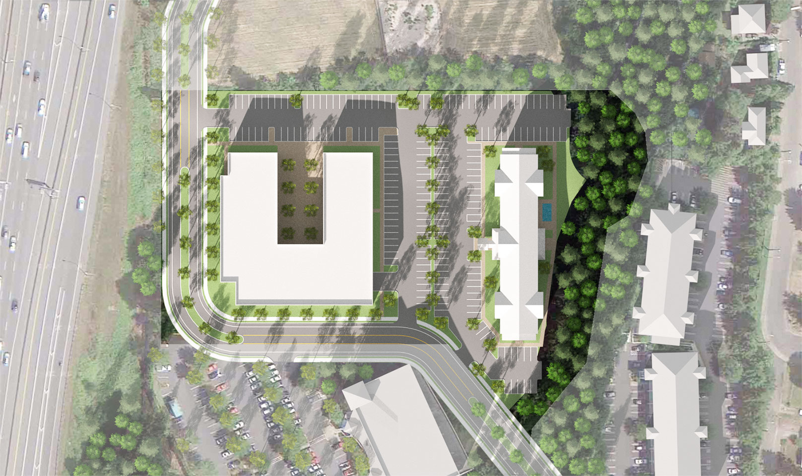 TWIST and Shoesmith Cox Architects collaborated to do a quick site feasibility study on a 4.83 acre site in Mountlake Terrace, WA. The study featured a 97 room hotel and a Multi-Family / Senior Living concept. The team was able to quickly do a multiple of sketches and work with the owner to narrow down the ideas. Then we went into 3D so the owner could both understand the spacial qualiteis and have a quality marketing product.
