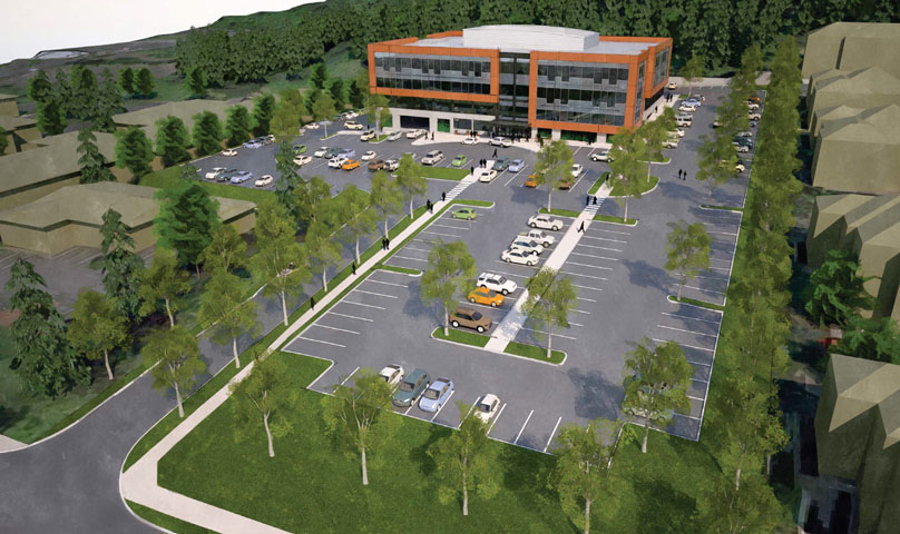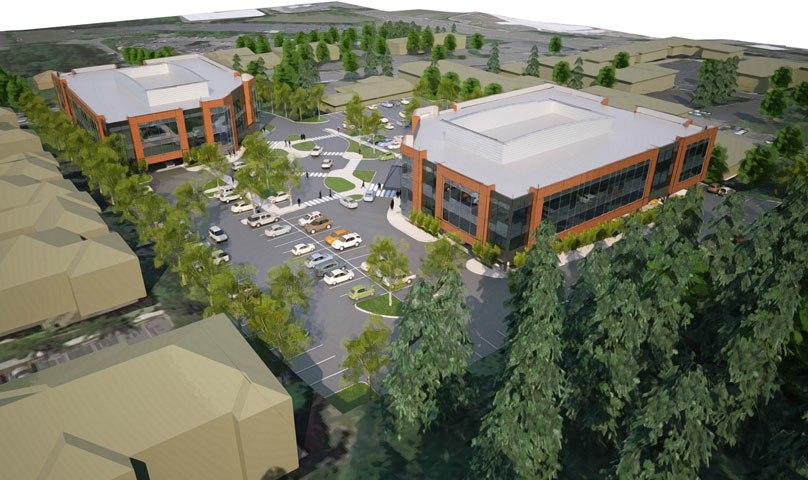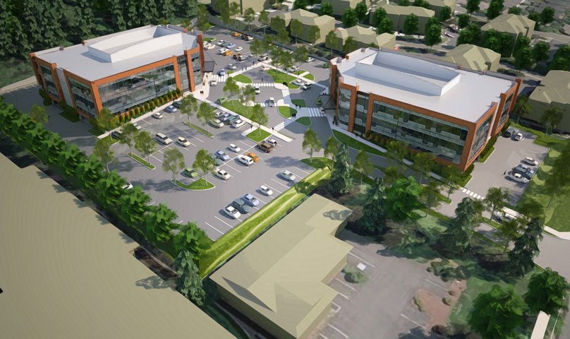study featured a single 2-story 80,000 square foot building with one level of below grade parking and the second study featured two 2-story 40,000 square foot buildings with one level of below grade parking and a pedestrian plaza. The feasibility studies are still being used to market the site to potential tenants.