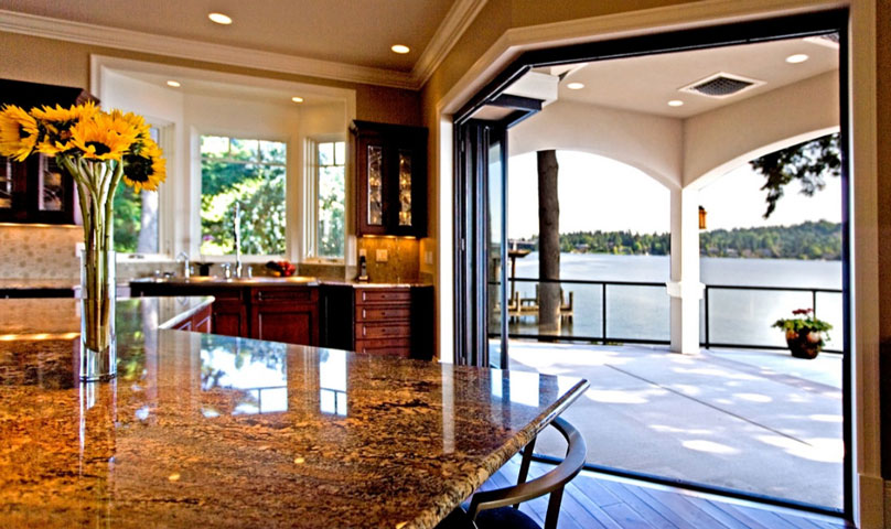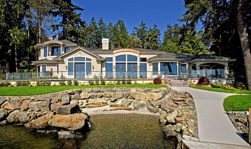 This new waterfront home was challenged by a constrained set of building setbacks that threatened to limit the owner's enjoyment of the lake. We were able to work with the city of Bellevue to increase the buildable waterfront frontage on Lake Washington. Now, every room greets you with a captivating view.