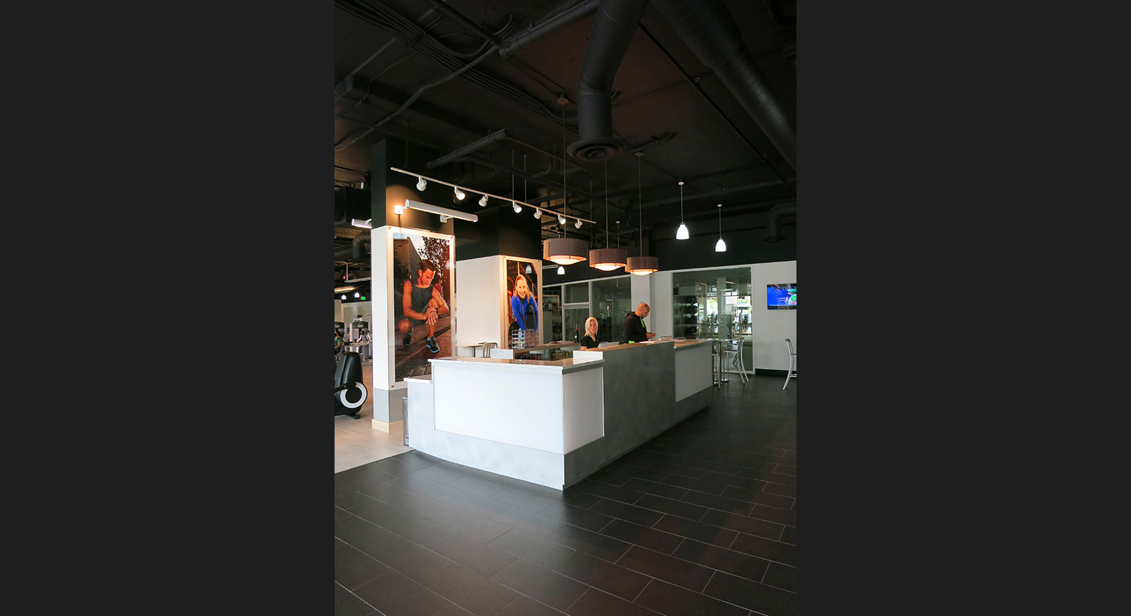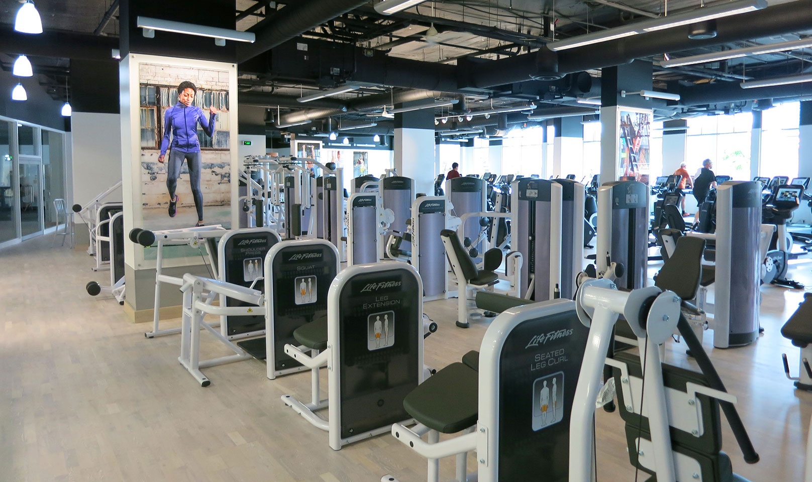 art fitness equipment, beautiful ceramic tile and wood floors, soothing colors, and energy efficient decorative lighting.