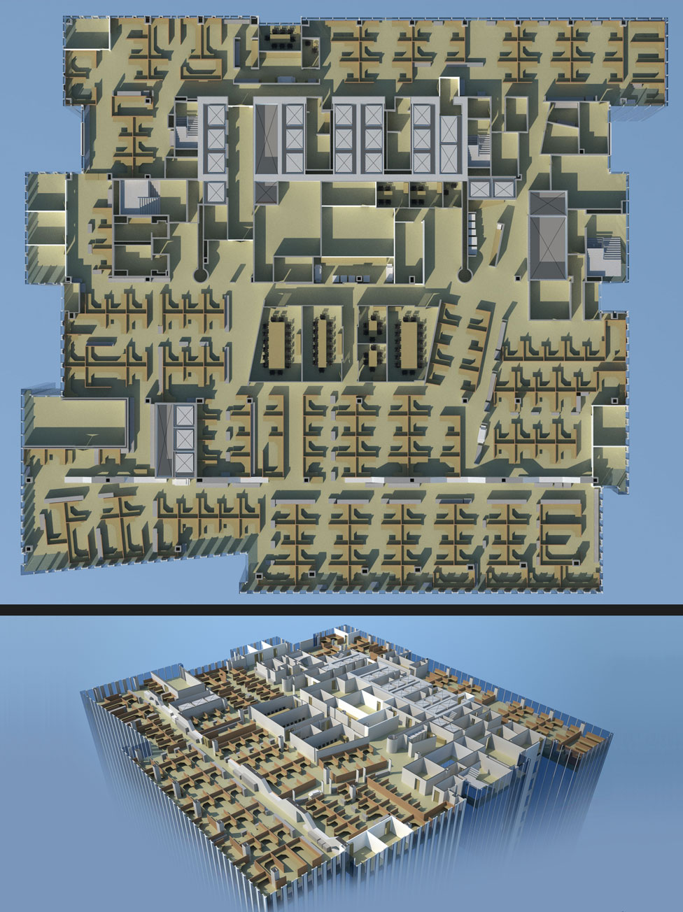 Test fits are often the point at which open office and enclosed areas get defined and this is an ideal time to use a 3D rendering to show how volumes of space are going to be envisioned.